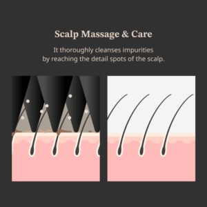 Bàn chải da đầu làm sạch cặn bã trong khoảng 100.000 lỗ chân lông mà không gây kích ứng.