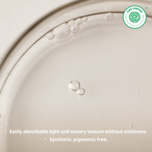 Kết cấu nhẹ, lỏng dễ hấp thụ mà không gây bết dính. Màu trong suốt không chứa bất kỳ phẩm màu tổng hợp nào.