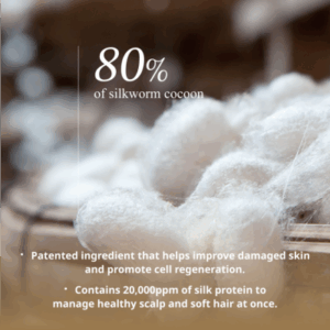 Điều trị tóc không cần gội, nuôi dưỡng tóc bằng công nghệ protein tơ tằm được cấp bằng sáng chế. Chứa các thành phần thúc đẩy tái tạo tế bào da, giúp da đầu khỏe mạnh và tóc mượt mà.